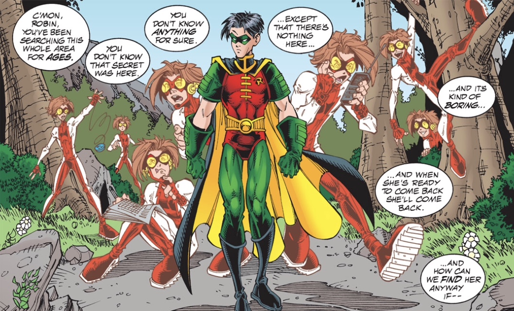 Now let us check in on our favorite detective team, Robin and Impulse. Wait ... what?